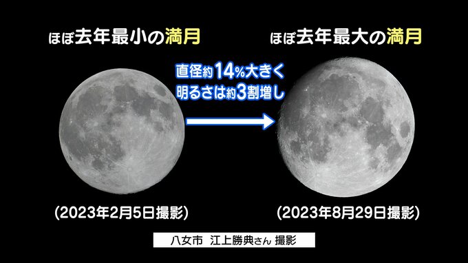 最大の満月と最小の満月、大きさと明るさはこんなに違う