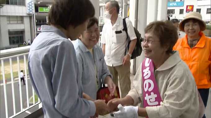 共産・新 一ノ瀬小夜子候補(75)「みんなが健康で、健やかに生きていく、そんな社会を作るため、十二分に出し切って戦って参りたいと思います」