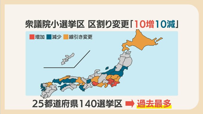 区割りの変更は、25都道府県の140選挙区で、過去最多となっています。