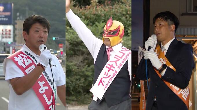 日本維新の会の新人・松尾嘉三候補(56)、無所属の新人・タコスキッド候補(48)、参政党の新人・岡部吉高候補(42)は支持が広がっておらず、厳しい戦いです。