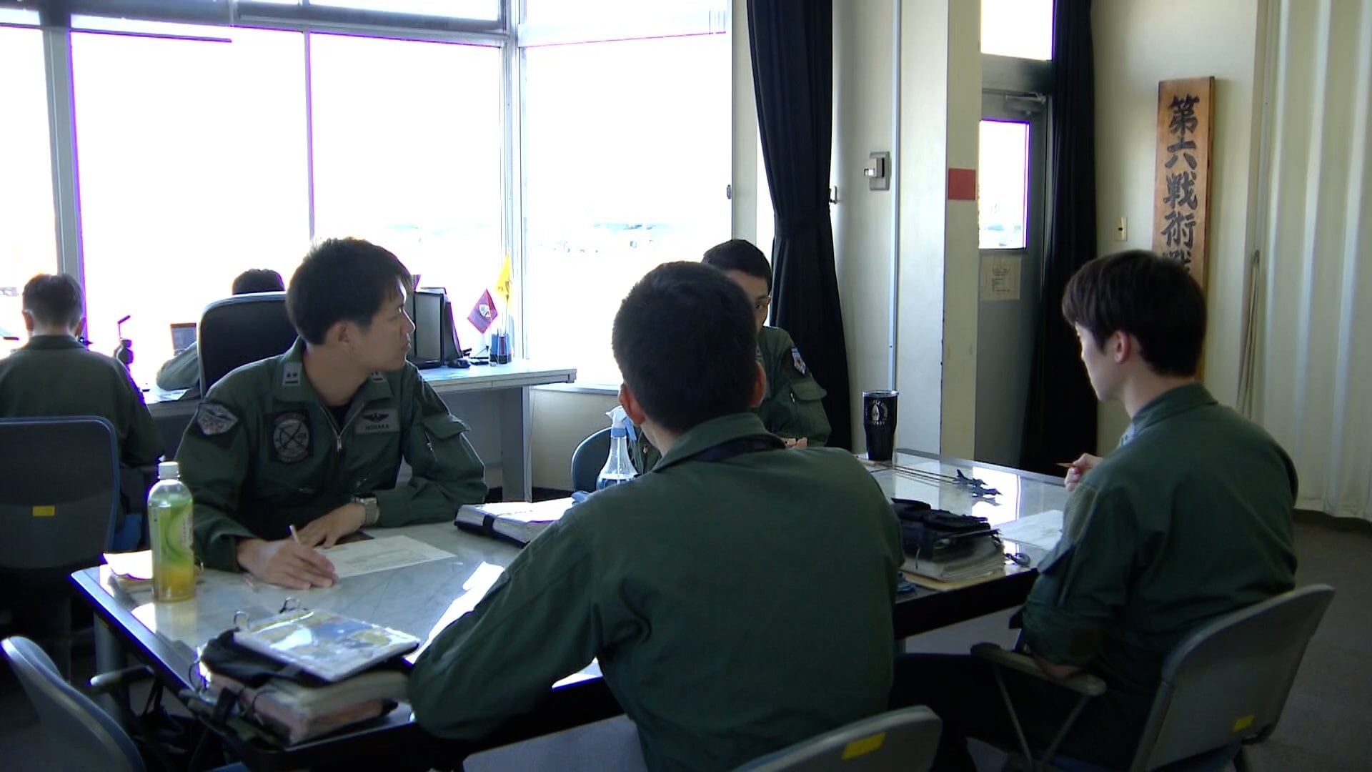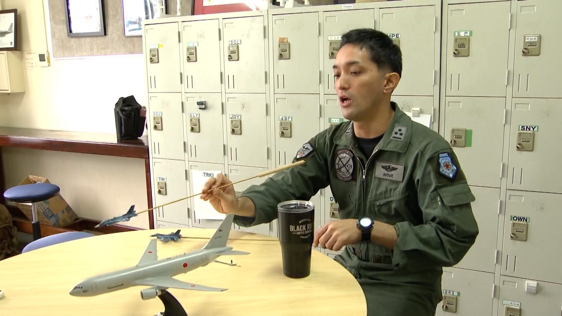 模型を使って訓練の説明をしているのは、先輩隊員の井上道1等空尉(35歳)です。今回は領空に接近した国籍不明の飛行機に警告し、その最中に通信トラブルが発生することを想定します。