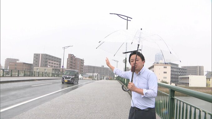 RKB 高田佳明 記者「あちらのマンションや小学校があるあたりでイノシシの目撃情報が相次いだのですが、その後、警戒中の警察官は、こちらの川を泳いでいるイノシシを発見したということです」