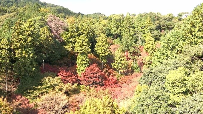 例年ならこの時期におよそ1000本の木々が色づく油山。