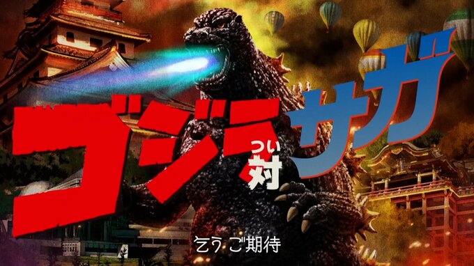 佐賀県で行われるイベントにゴジラが出現するほか、佐賀県庁の展望台ホールには、窓の外からのぞき込むゴジラの巨大パネルなどが展示されています。