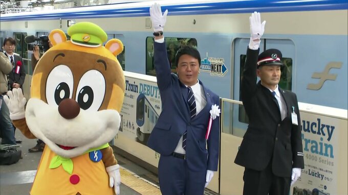 福岡市西区の姪浜駅では29日、福岡市地下鉄の空港線と箱崎線としては、32年ぶりとなる新型車両「4000系」の出発式が開かれました。
