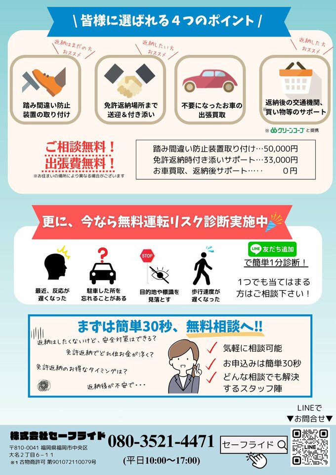 福岡市に住む山内紗衣さん(35)。今年8月、高齢者の免許返納をサポートする会社を立ち上げた。免許返納を考える高齢者やその家族の相談に応じ、返納手続きや車の売却だけでなく、車なきあとの生活支援も行う。高齢者の多くが免許返納後の生活に大きな不安を抱いているからだ。