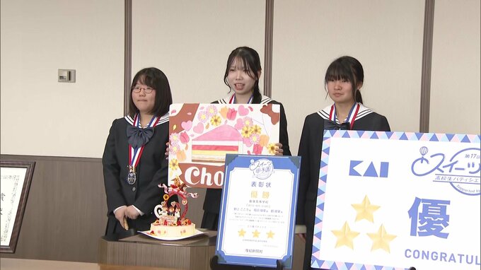 3人は、今年9月に開かれた高校生パティシエのトップを決める「スイーツ甲子園」の全国大会で見事優勝を果たしました。