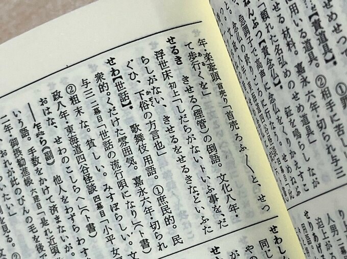 神戸:それから「江戸の文化が感じられる」ものも多いんです。「塩絶ち」という言葉があります。神仏に祈願している間は塩分を摂ることを避ける。「塩絶ちして、家族の無事を祈る」なんていう言葉から、文化がわかる。あと、「色っぽい言葉」もいっぱいあります。