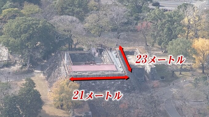 佐藤教授によりますと福岡城の天守台の縁の長さはおよそ23メートルと21メートル。