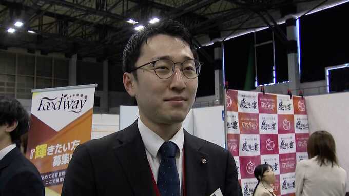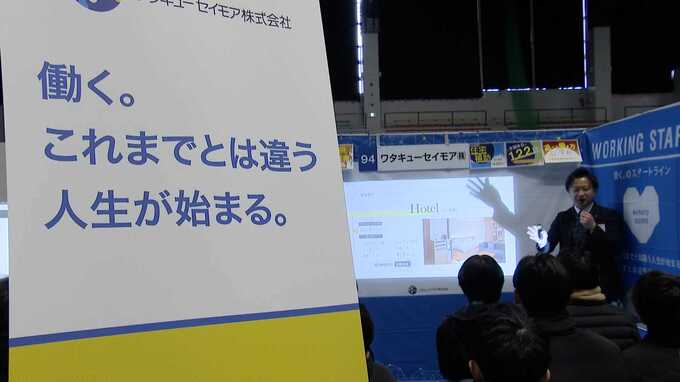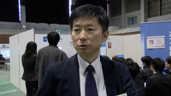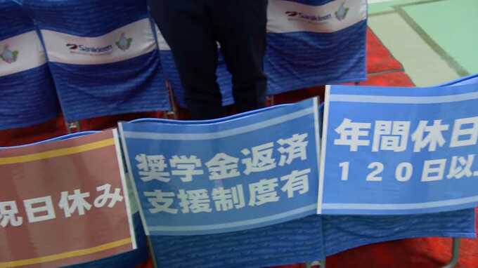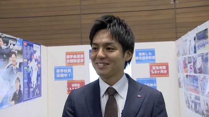 企業の担当者「(ブースに張り物がすごくあって。これ休み、勤務地、お金、休み…)そうですね。その辺を学生にサニクリーン九州の売りを伝えられたらいいのかなと思います。」