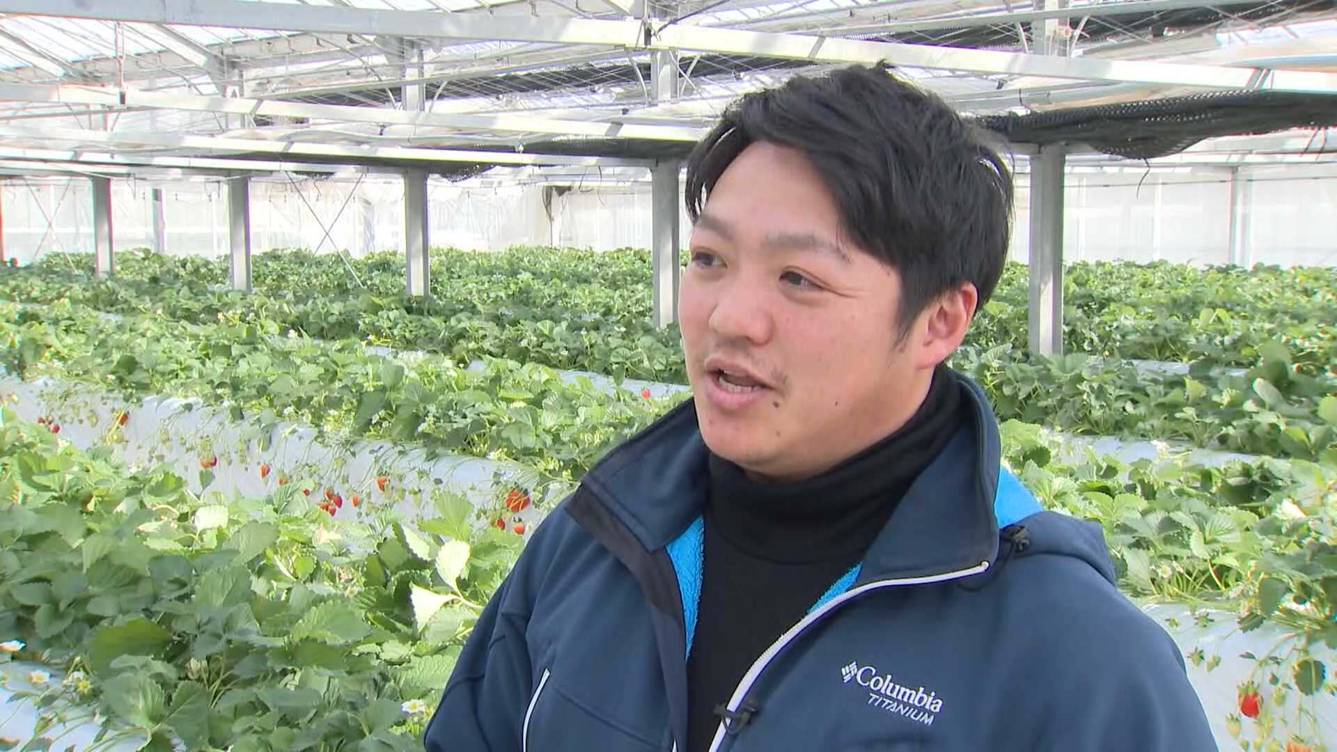 池いちご園 池俊伸さん「大体例年でいくとこのぐらいの時期から日が照ってきていたりするので、天気が悪いとイチゴの生育が進みが遅かったりして、本来熟れているはずのイチゴが熟れないから、イチゴ狩りのお客を断ることもある。つらいですね」