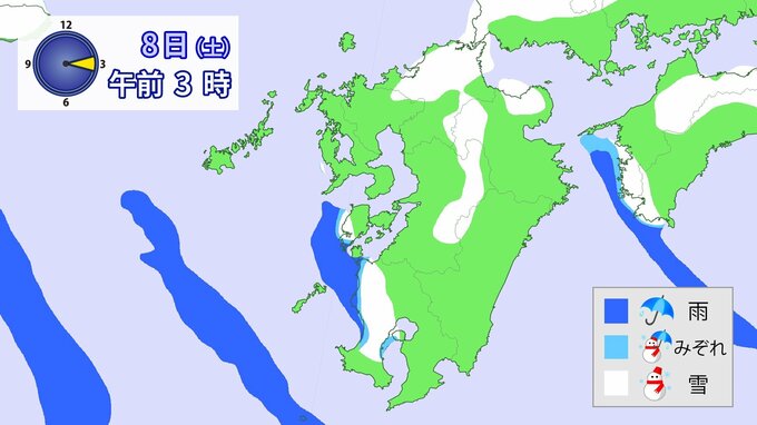 7日午前6時から8日午前6時までに予想される24時間降雪量(多い所)