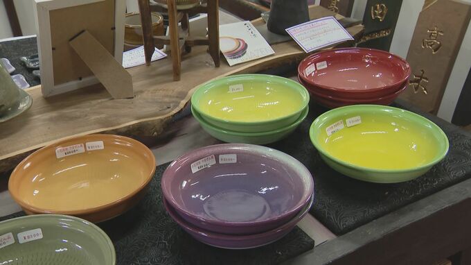RKB川内信江「小石原焼きといえば、飛びかんなや刷毛目といったデザインが思いつくと思いますが、今では色やデザインも豊富になって、食卓を飾る映える作品が増えてきているということです」