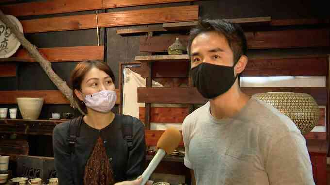 来場客「昔は、小石原焼は古い作りだったけど、最近は若者向けになっているので、見るだけでも楽しいです」「器が好きで、実際に手に触れて厚みとか触った感じを自分で選んでいくのが楽しみです。かわいいのがたくさんあって、たくさん買ってしまいました」