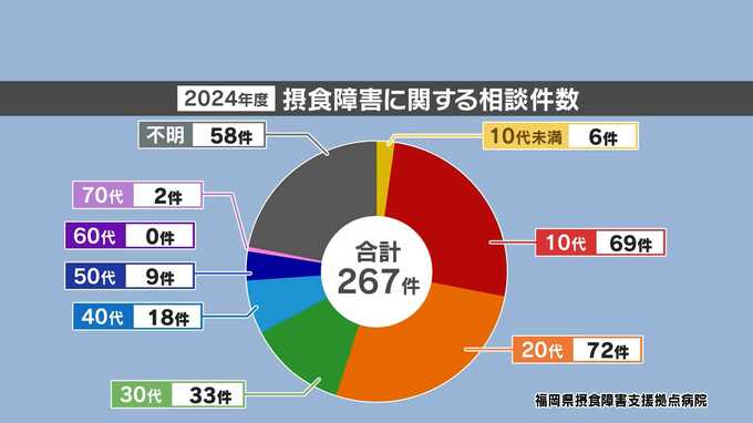 先進国に住む思春期や青年期の女性の発症が多い障害で九州大学病院の心療内科に設置された福岡県の摂食障害支援拠点病院への相談数は昨年度267件にのぼりました。