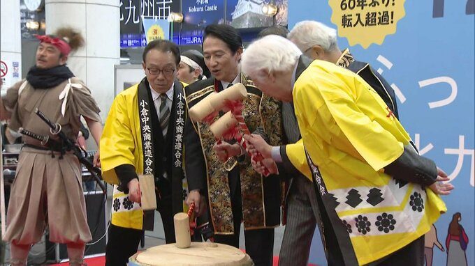14日午後、JR小倉駅で開かれたイベント「ふっかつの北九州市」は、去年、市の転入者の数が転出者を上回り492人の転入超過となったことを受けて市や商工会議所が企画しました。