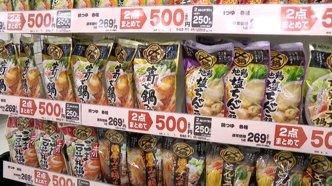 RKB 馬場遼之介記者「例年ですと春に向けた商品を売り出す人気商品コーナーには冬の定番鍋つゆが並んでいます」