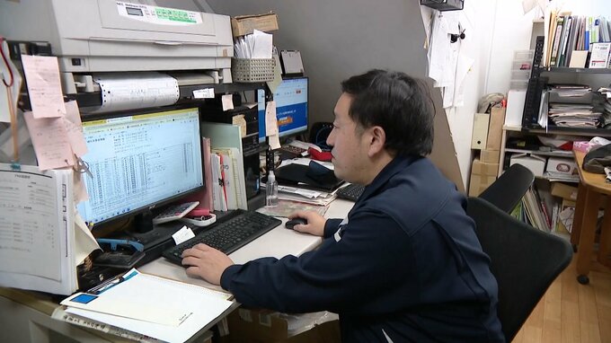 備蓄米の放出の発表を受けて、パソコン画面に向き合う新飼さん。玄米の売買仲介サイトで、卸売価格をチェックします。