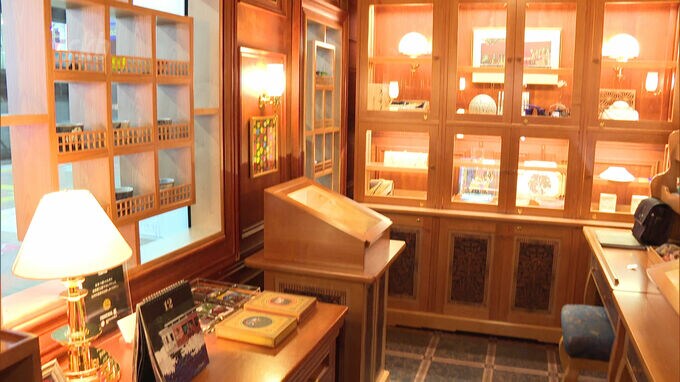 3号車には新たにギャラリーショップが置かれました。有田焼や肥前のビードロなどの九州の工芸品を展示され、懐中時計などのオリジナルグッズの販売も行われます。さらに、この車両にはベールに包まれた場所があります。