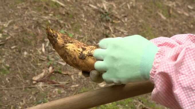 15年間タケノコを生産している中島さんです。春に出回り始めるタケノコは、土の中から掘り起こします。