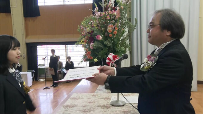 式では、各クラスの代表が壇上にあがり、卒業証書を受け取りました。