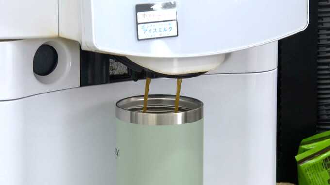 コーヒーマシンを使っていれる「マチカフェ」は、タンブラーやマグカップを持参すると10円引きになります。また、アイスドリンクの販売容器は紙製のものに変更、スプーンやフォークは持ち手の部分に穴を開けてプラスチックの使用量を減らしています。