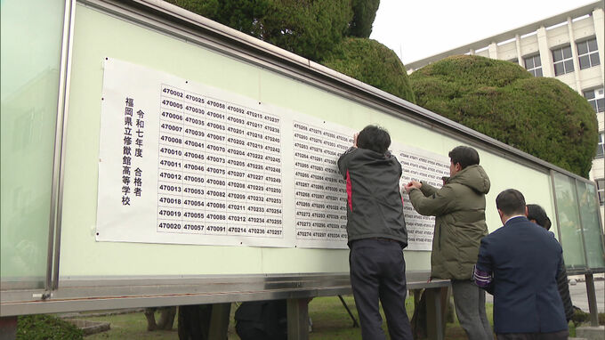 福岡市早良区の修猷館高校では、17日午前9時に合格者440人の番号が掲示板に張り出されました。