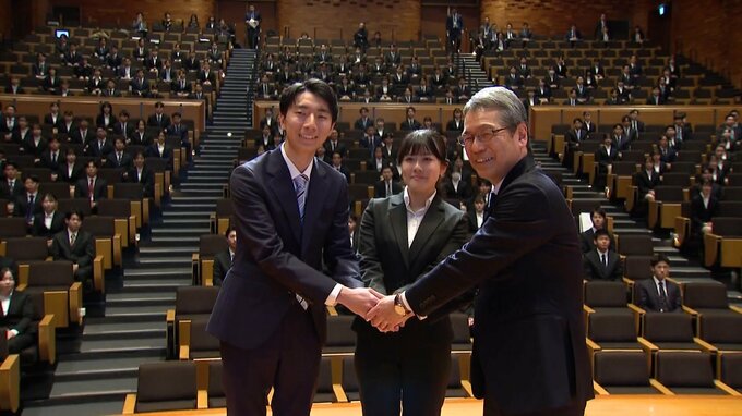 「実際に選手たちがプレーされてるところで入社式というのは新鮮ですし、わくわくしました」