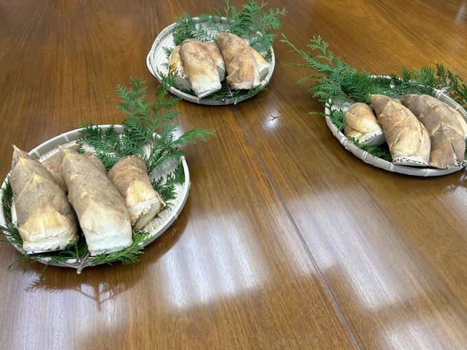 今年で設立40周年を迎える出荷組合は、服部知事に2日、タケノコを贈呈。