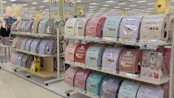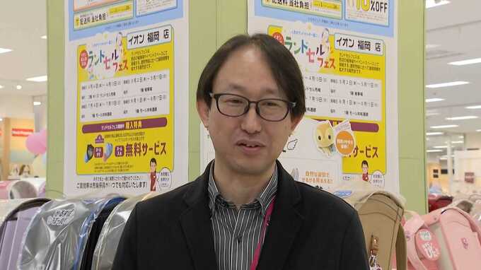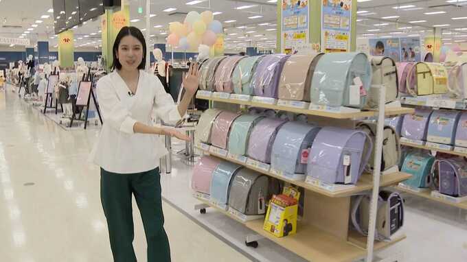 RKB 武田伊央 アナウンサー「イオン福岡にやってきました。新年度が始まったばかりですが、こちらでは来年度用の新1年生のランドセル売り場が設置され、ずらりと400種類、色とりどりのランドセルが並んでいるんです」