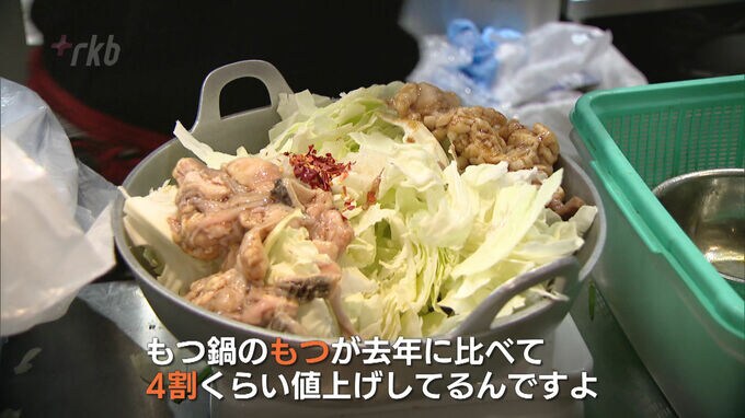 家畜の飼料や農産物の肥料に、出荷するときの燃料費、加工にかかる電気代やパッケージの資材価格など、食卓に届くまでのあらゆる過程に値上げの波が押し寄せているのです。このため楽天地は今月から、もつ鍋の価格を約10%引き上げる苦渋の決断をしました。