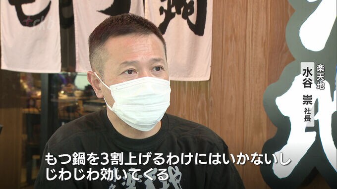 水谷社長「3割値上げは大きいですね。もつ鍋を3割上げるわけにはいかないし、じわじわ効いてくる」