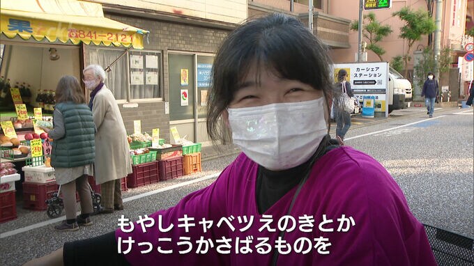 買い物客「(Q鍋しますか?)鍋しますよ、安いお店探して買ったり、まとめて買ったりたくさん。昔ながらの八百屋さんとかあるので、スーパーとうまく使い分けしながら。ねえ大将!(値段が)上がってますよねけっこう」