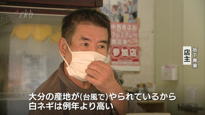 店主「大分の産地が(台風で)やられているから白ネギは例年より3割ぐらい高いです」