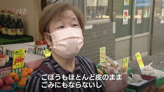 買い物客「みんな皮のまま食べます。ニンジンでも大根でもごぼうも泥を洗ってほとんど皮のまま。ゴミにもならないし。スーパーに行くときはお腹すかせていったらだめね。何でも欲しくなるから。お腹いっぱい食べて買い物に行く」