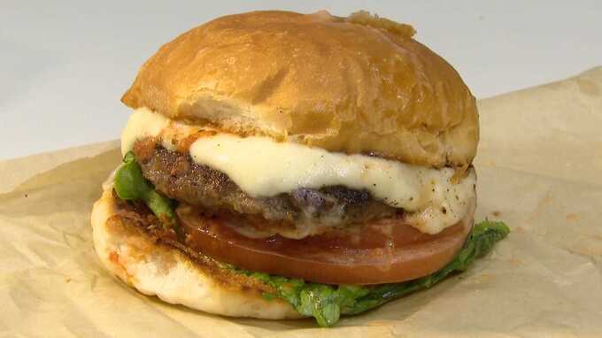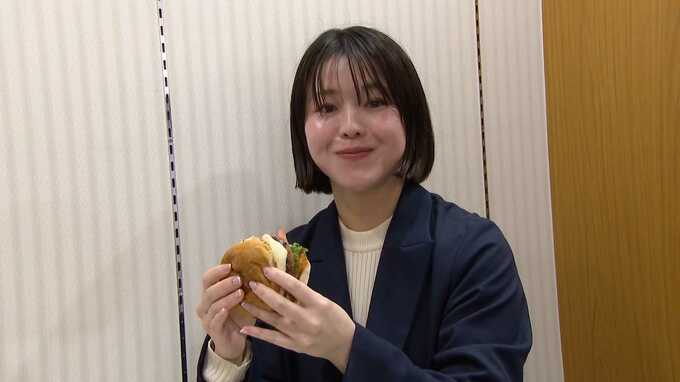 RKB 松村かれん記者「モッツァレラチーズと北海道産の牛のパティがボリュームがありますね。ジューシでおいしいです」