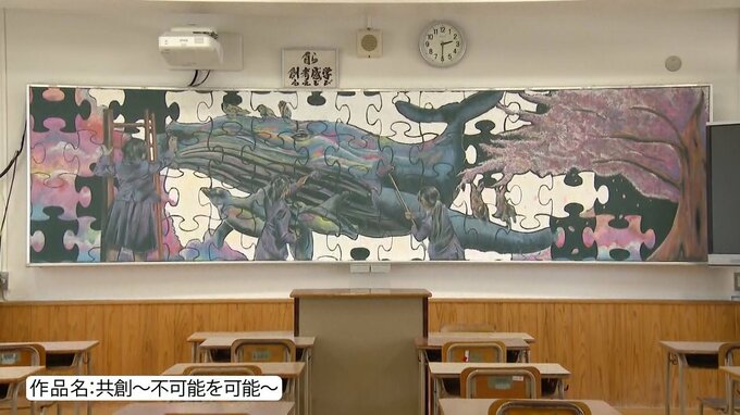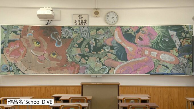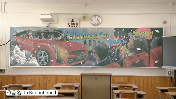 八幡中央高校では2018年から黒板アートを始め、今回で7回目で、今後も続けていきたいと話しています。