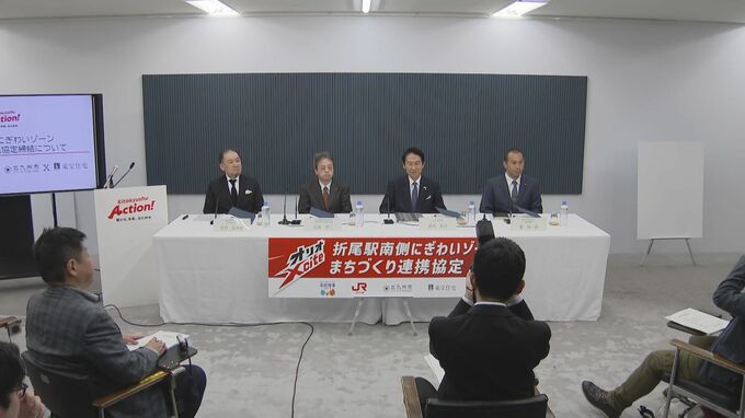 9日、北九州市の武内市長とJR九州など3社が集まり、JR折尾駅の南側エリアのまちづくりに向けた協定を締結しました。