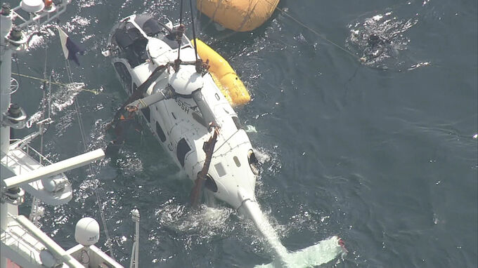 ヘリコプターは10日午前8時ごろから陸上に引き揚げられ、海上保安庁が実況見分を行い詳しく調べる方針です。