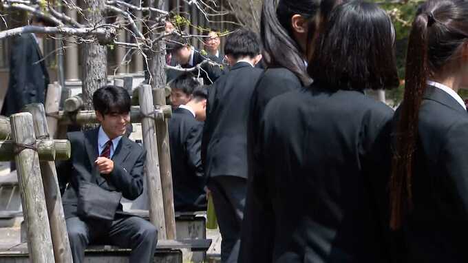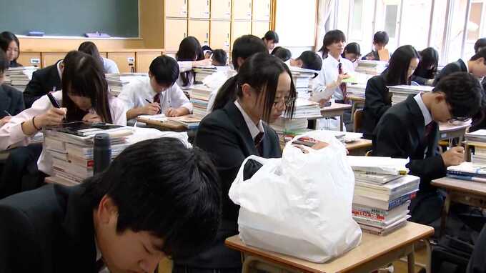 一夜明け、新入生たちはそれぞれの教室でどっさりと教科書や参考書などを受け取り、高校生活の準備を進めていました。