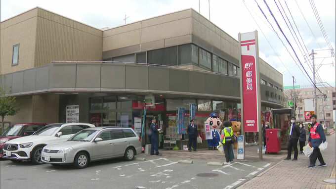15日午前、福岡市西区の郵便局で「ニセ電話詐欺被害防止キャンペーン」が行われました。