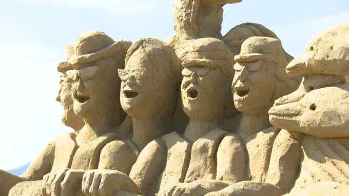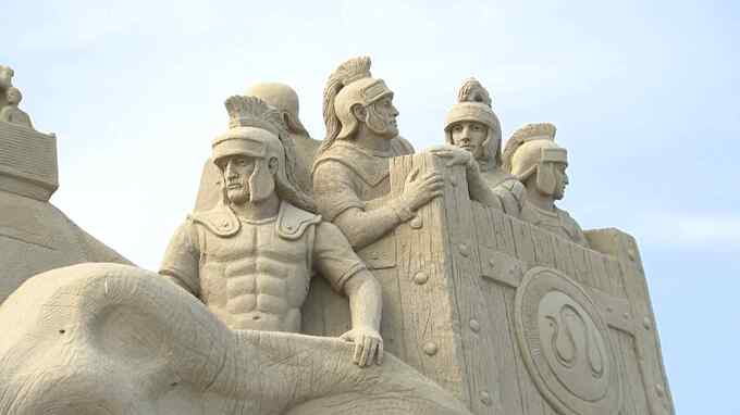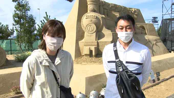 砂のアート「あしや砂像展」は11月13日まで開かれていて、日没後のライトアップや花火の打ち上げなども予定されています。