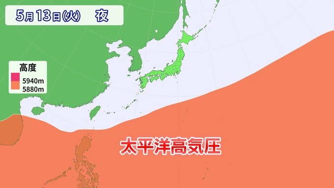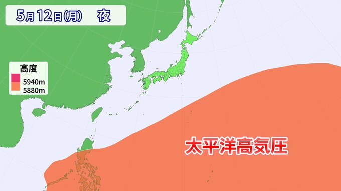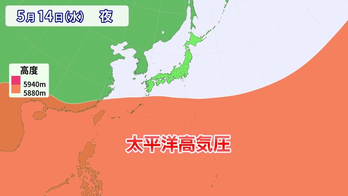 前線は沖縄を飛び越えて、本州付近に一気に北上原因は強まる太平洋高気圧