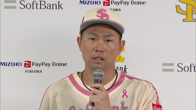 ホークスの選手たちがピンクのユニフォームで乳がん検診を呼びかけます。