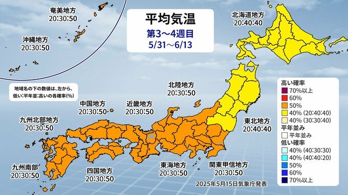 この先も暖かい空気に覆われやすく、全国的に気温が「高い」見込みです。6月中旬にかけて、最高気温30℃以上の真夏日となる所も、次第に増えてくるでしょう。