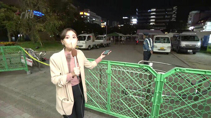 緑の策で囲われています。5時から封鎖され、一般の人も入れません。一人一花サミットのため封鎖しています。福岡県警はハロウィーンに合わせて警備本部を設置し、機動隊やDJポリスを派遣するなどして警戒にあたっています。ソウルの群集事故を受けて警察庁から事故防止の指示があり、特に狭い道路を警戒するということです。