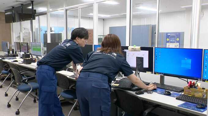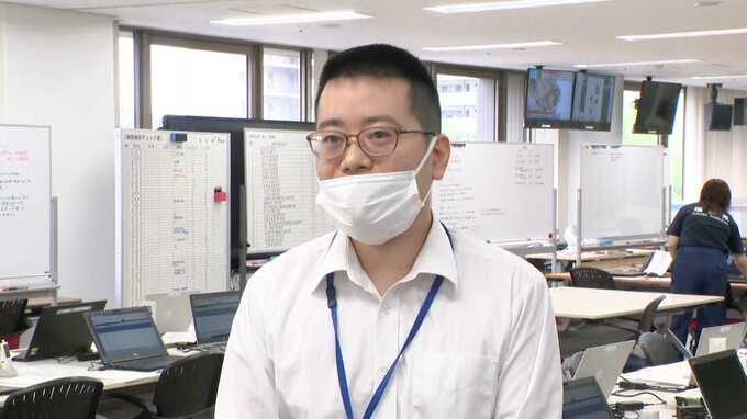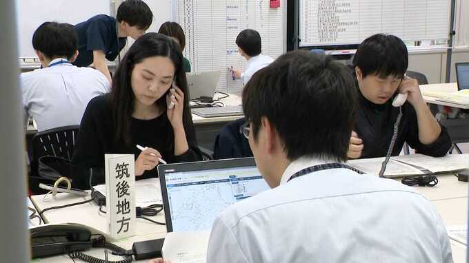 到着した職員たちは福岡地方や北九州地方など4つのエリアに分かれて被害情報の収集や自衛隊などの支援態勢を聞き取りホワイトボードに書き込んでいきました。