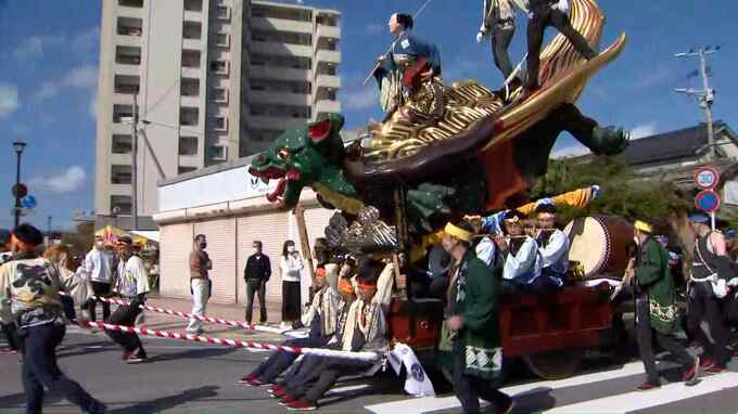 城下町・唐津市の「唐津くんち」、2日目は獅子や鯛などをかたどった14台の曳山が市街地を巡りました。