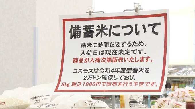 「備蓄米があるって聞いていたので、きのうも来たんですけどもうすぐって書いてあったので売ってたということだったので来てみたんですけど、買えなくてちょっと残念でした。ちょうどけさ、買っていた台湾米がなくなっていたので、うちはまだ子供が小さいのですごく食べるから安かったらすごく助かる」