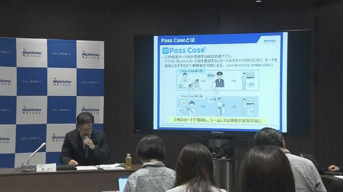 西鉄の林田社長は20日の会見で三井住友カードが提供する総合交通アプリ「パスケース」を7月1日から試験導入すると発表しました。